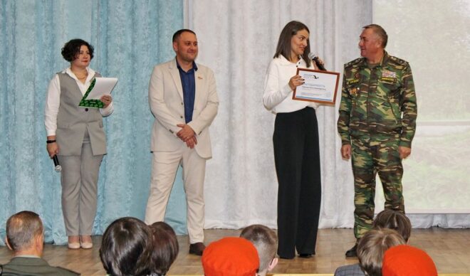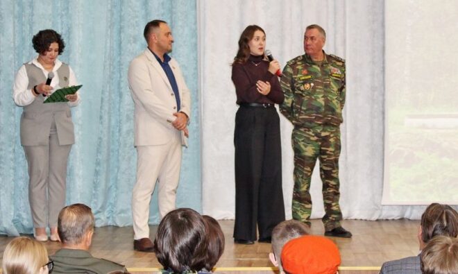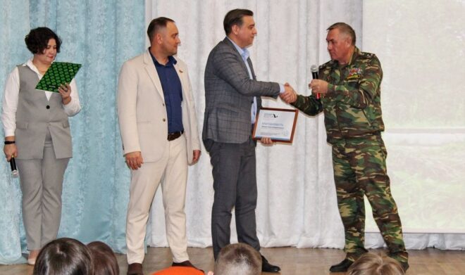 Руководитель исполкома Новосибирского регионального отделения «ОФИЦЕРОВ РОССИИ» полковник внутренней службы в отставке Юрий Соловьев провел патриотическое мероприятие в средней общеобразовательной школе №215 имени Героя Советского Союза Д.А. Бакурова.